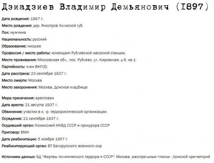 Жители Рублёво - жертвы политических репрессий 1922-1946 гг.