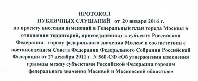 ПРОТОКОЛ ПУБЛИЧНЫХ СЛУШАНИЙ от 20 января 2016 г.